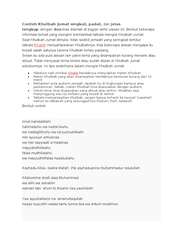 Teks Khutbah Jumat PDF Terkini. Khutbah Jumat adalah khutbah yang dilakukan sebelum sholat berjamaah dua. Kemudian beliau merintih kala itu.